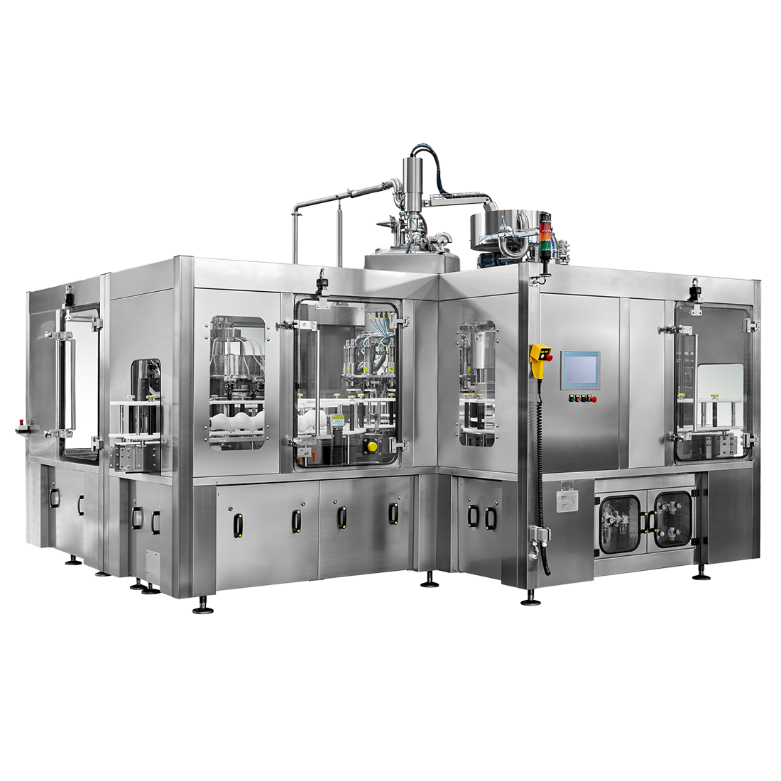 該設備洗瓶部分由翻轉(zhuǎn)內(nèi)洗及瓶身外噴沖兩部分清洗組成,洗瓶工藝包括消毒洗、清水洗、滴干三種工藝,通過對瓶子的沖洗確保灌裝前瓶子的潔凈;在灌裝部分,包括紅外線檢測及流量計定量灌裝兩種可選灌裝方式。灌裝過程穩(wěn)定,液位精準;在旋蓋方面,使用最新研發(fā)針對大口徑瓶蓋的旋蓋頭,旋蓋頭扭力可無級調(diào)速,旋蓋機旋蓋速度快,扭力穩(wěn)定。